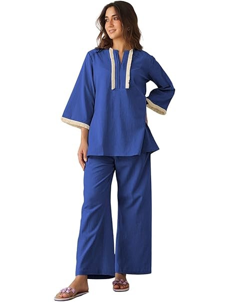 • Comfortable Fit: Flattering design with 3/4 sleeves.Palazzo pants Wide-leg design for a graceful look.